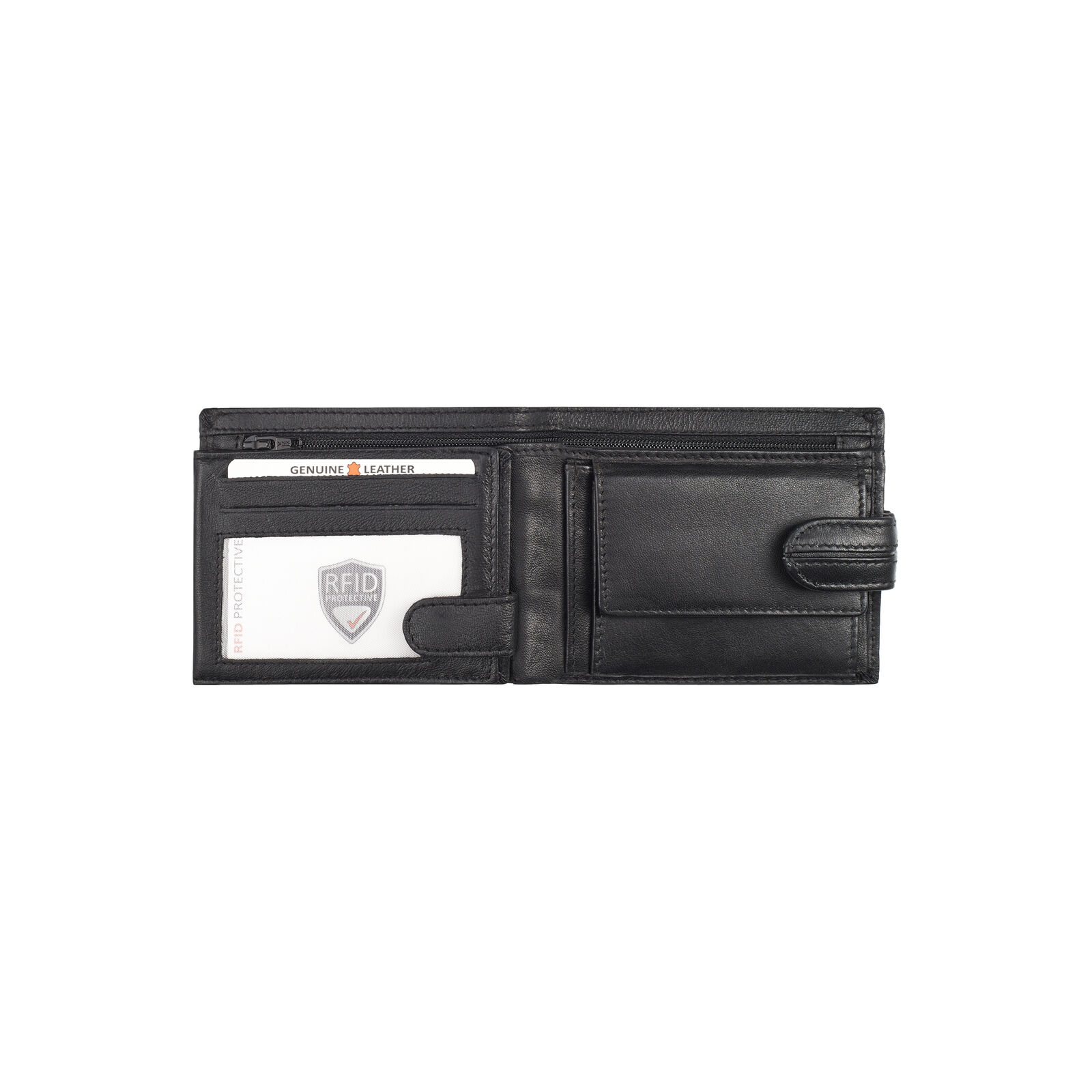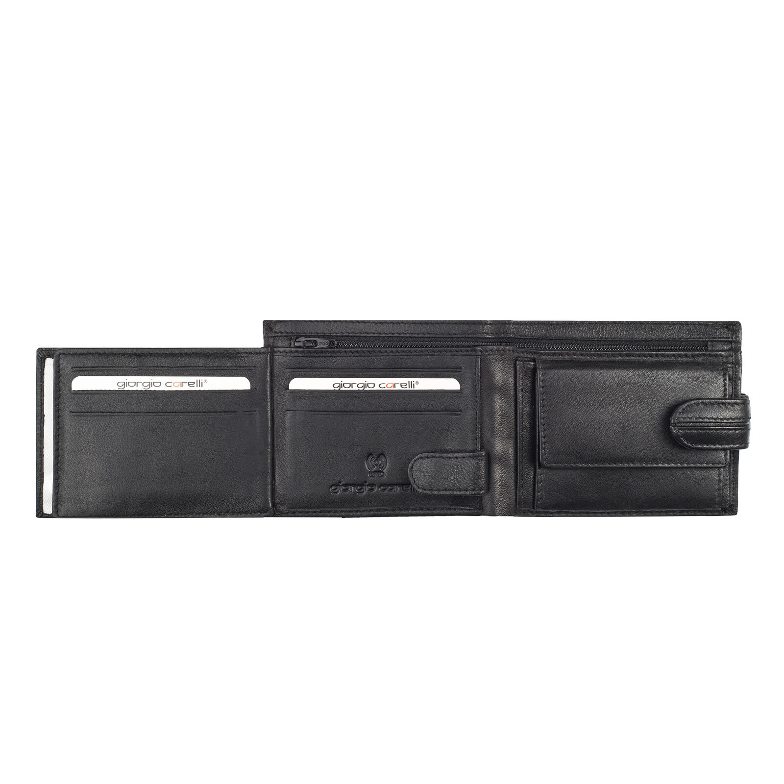 Elülső lapon kártyatartó és egy átlátszó, íves igazolványtartó rekesz;
