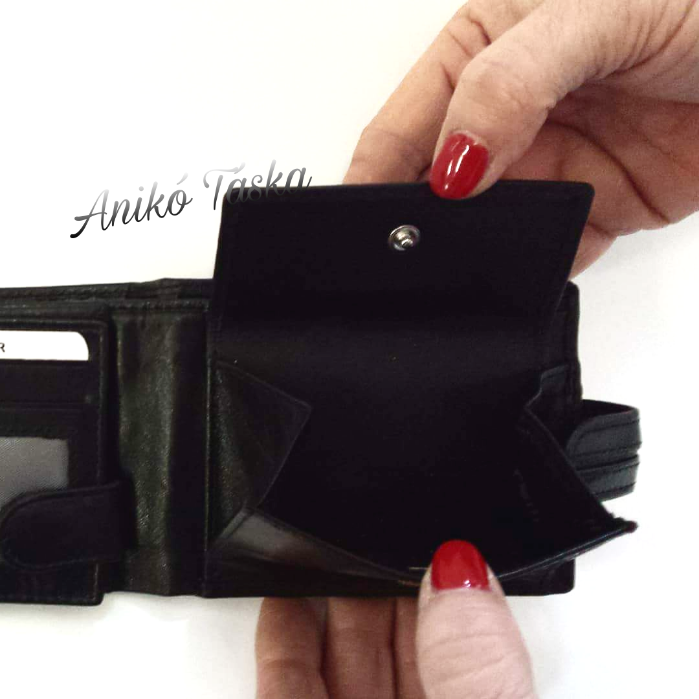 Nyárfa mintás logóval, bőr férfi pénztárca; Fekvő fazonú, kapcsos, azaz patenttal zárható;