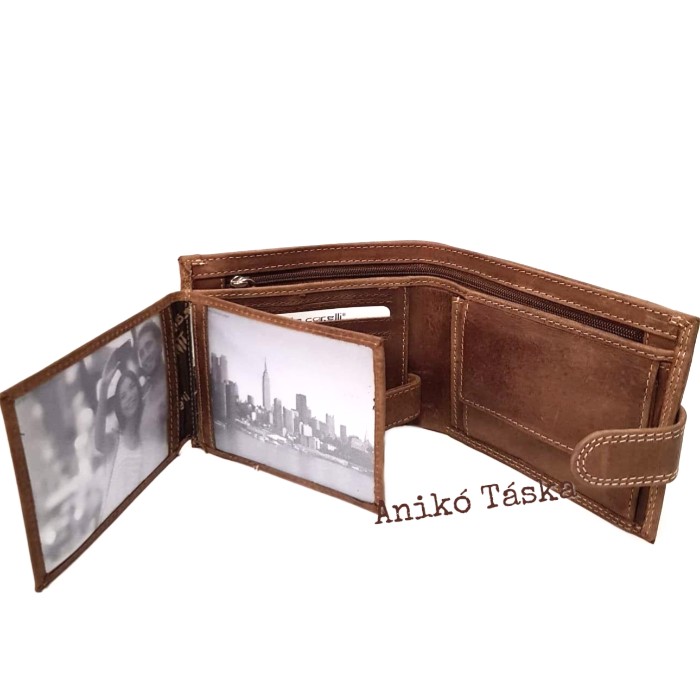 Puha tapintású, őzbarna színű férfi pénztárca;