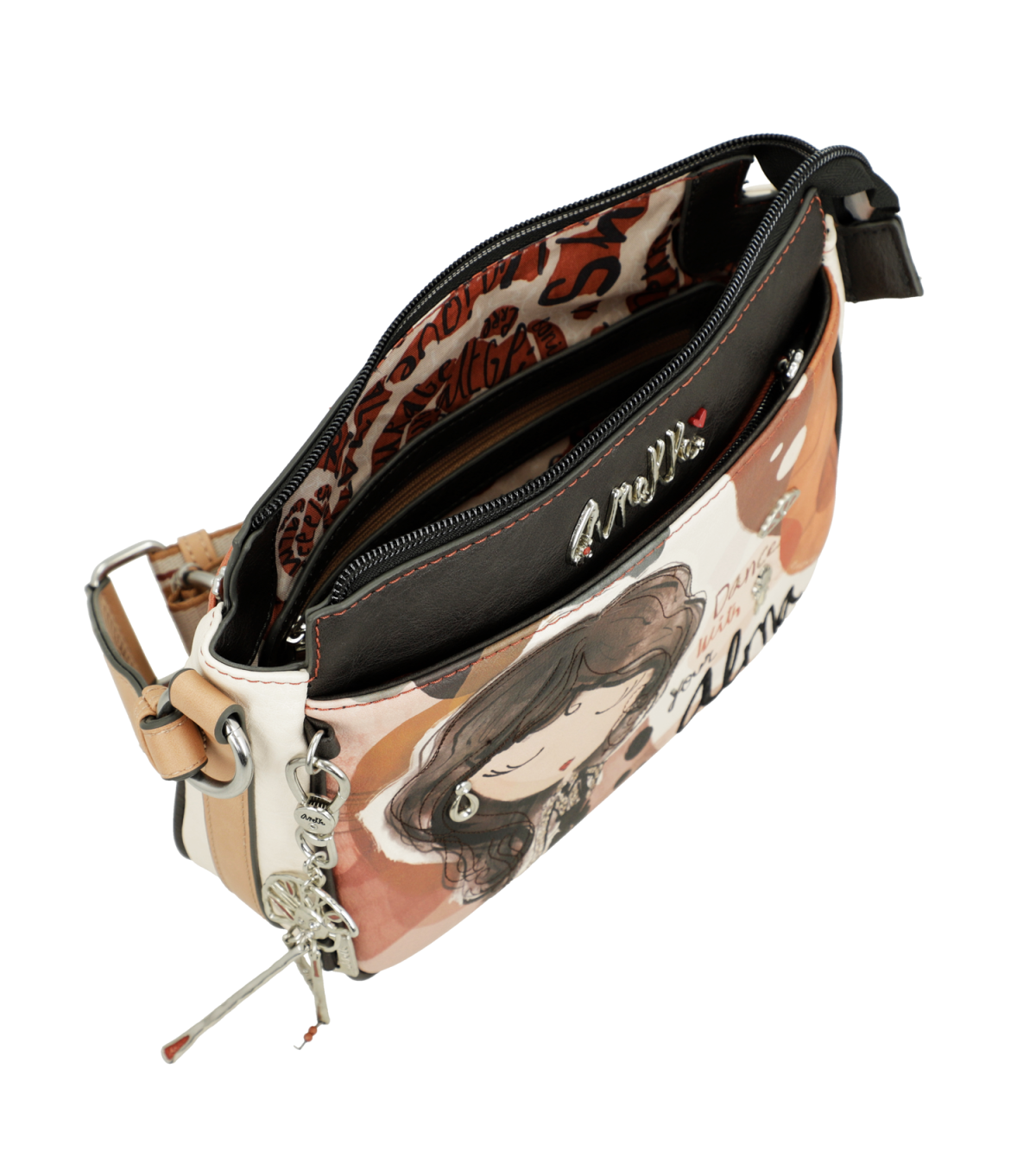 Anekke cipzáras válltáska, 3 független cipzáras rekesszel rendelkezik;