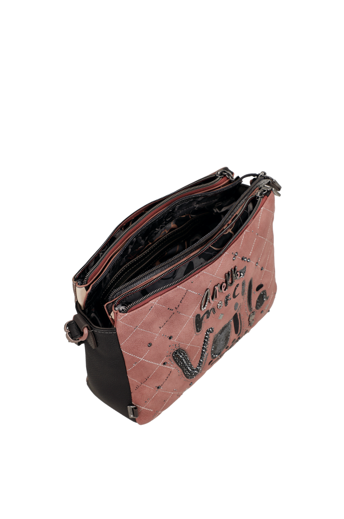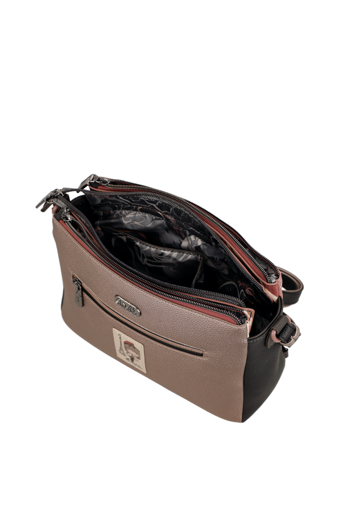 Anekke csinos 3 külön cipzáras zsebes válltáska / acrossbody bag, testen átvetve is hordható,