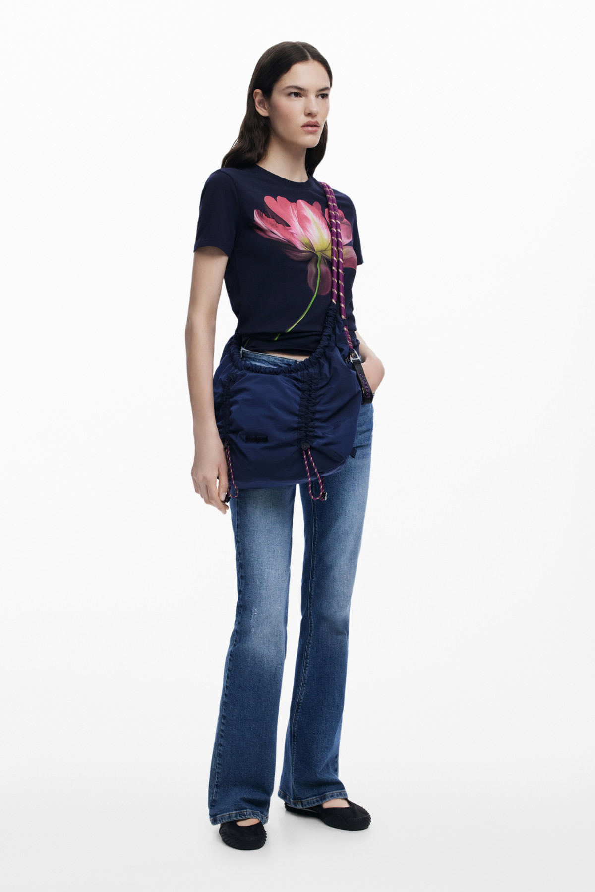 Desigual mini kézitáska plusz vállpánttal vágott virágos fekete