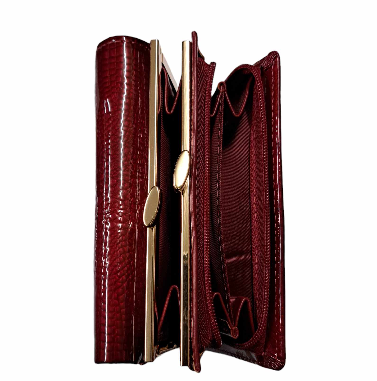 Piros sok kártyatartós keretes és cipzáras női pénztárca